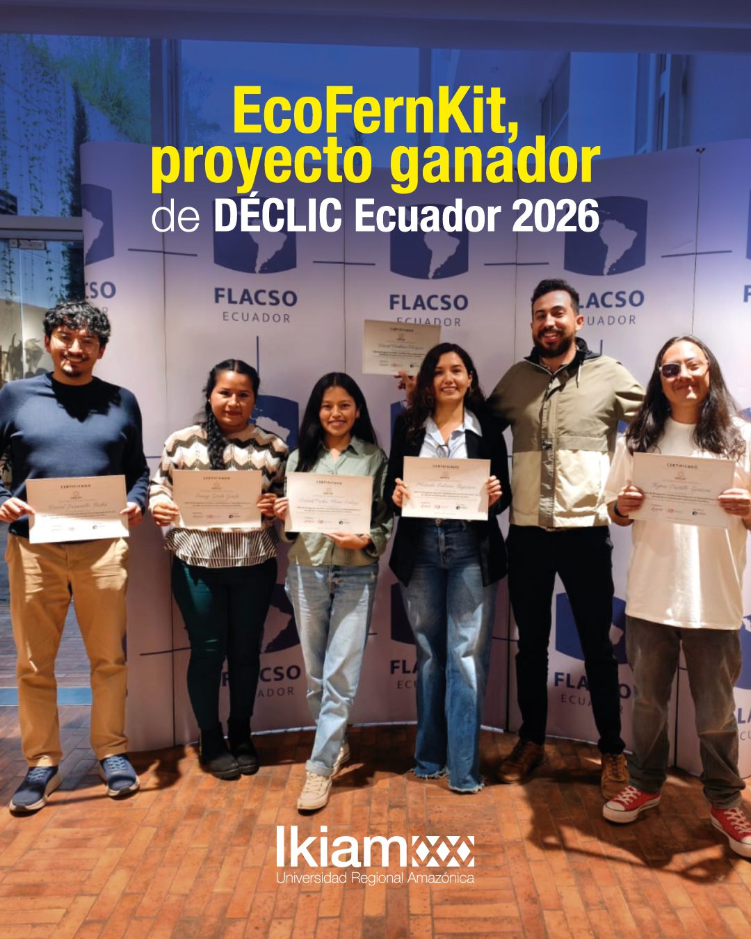 La Universidad Regional Amaz贸nica Ikiam celebra un importante logro en el 谩mbito de la innovaci贸n cient铆fica. El proyecto聽EcoFernKit聽fue reconocido como聽ganador聽de D脡CLIC聽Ecuador 2026, un programa que impulsa la conexi贸n entre ciencia, innovaci贸n y emprendimiento para transformar investigaciones en soluciones con impacto.